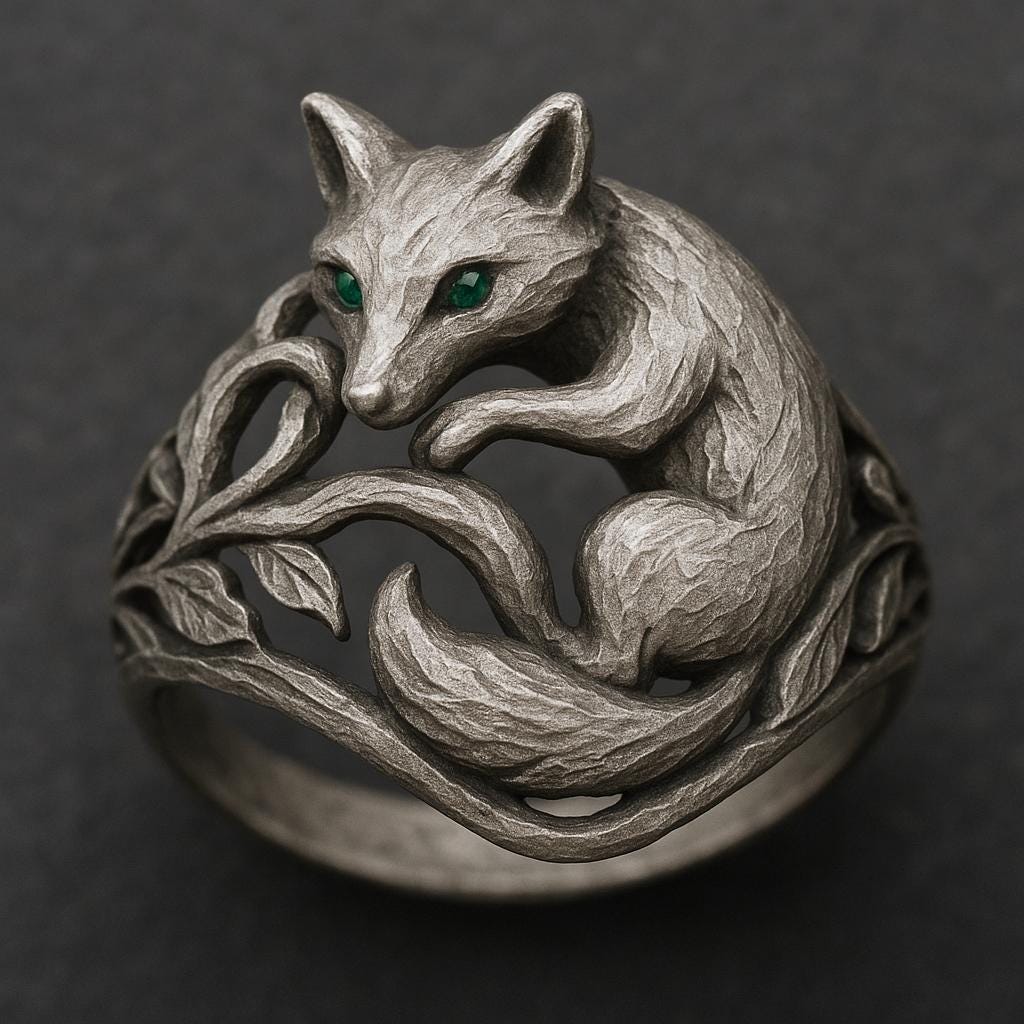 💫 Forest Fox Ring Handcrafted from S925 sterling silver, this Forest Fox Ring✨. A graceful curled fox rests among winding forest branches, its posture alert yet gentle, as if guarding a quiet corner of the woods. The eyes are set with shimmering zircon, adding a vivid spark of life to the serene silver tone. This design symbolizes intuition, protection, and quiet strength, perfect for nature lovers, forest-themed aesthetics, and anyone who enjoys mysterious, elegant jewelry🌿.