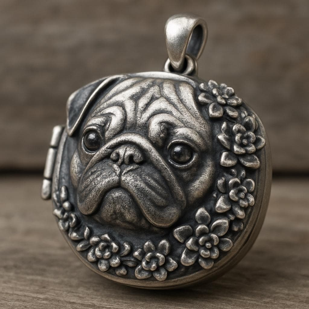 💫 Pug Blossom Locket Pendant Crafted from S925 sterling silver, this adorable Pug Blossom Locket Pendant features a cute pug face surrounded by a blooming floral wreath.🐶🌸 The lifelike wrinkles, soulful eyes set with sparkling zircon, and layered flower details create a vivid, heartfelt scene. The pendant also opens like a tiny secret box, perfect for keeping a photo or a tiny memory close to you. This piece symbolizes loyal companionship and tender affection — perfect for dog lovers, sentimental souls, or anyone cherishing a special bond ❤️
