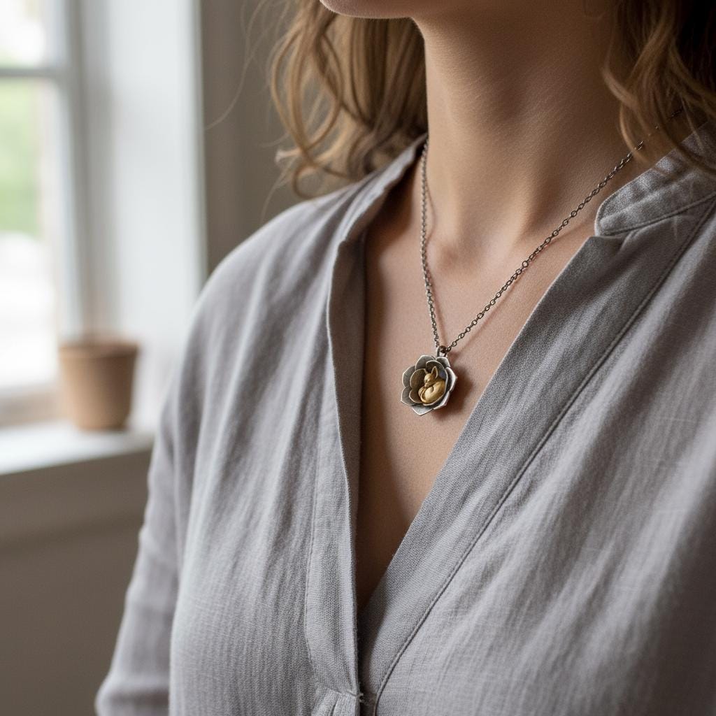 💫 Blossom Pup Pendant Crafted from S925 sterling silver with gold-plated accents, this exquisite Blossom Pup Pendant features a tiny golden puppy curled peacefully at the heart of a blooming silver flower.🌼🐶 The contrast of warm gold against cool silver creates a soft, dreamy storybook charm. This piece symbolizes gentleness, companionship, and quiet warmth — perfect for dog lovers and those who appreciate whimsical, nature-inspired jewelry✨