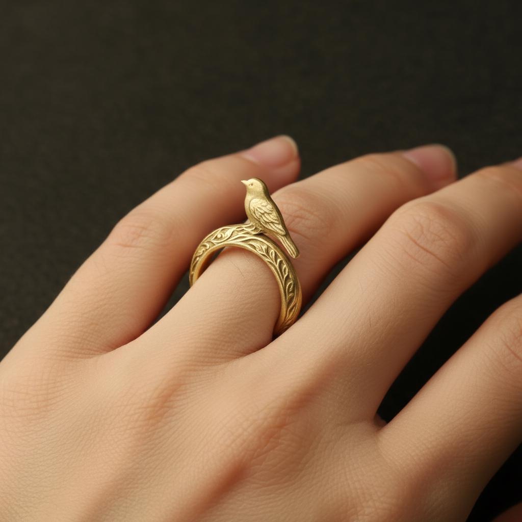 💫 Little Songbird Branch Ring Crafted from S925 sterling silver, this elegant Little Songbird Branch Ring 🐦 A finely sculpted bird perches gracefully atop a delicately carved branch ring, with flowing leaf patterns wrapping gently around the band. The matte surface and smooth contours create a serene, poetic woodland atmosphere, as if the bird has just paused to rest and sing softly among the leaves. This piece symbolizes peace, freedom, and quiet companionship — perfect for nature lovers, gentle souls, or anyone seeking a touch of calm beauty in daily life🌿