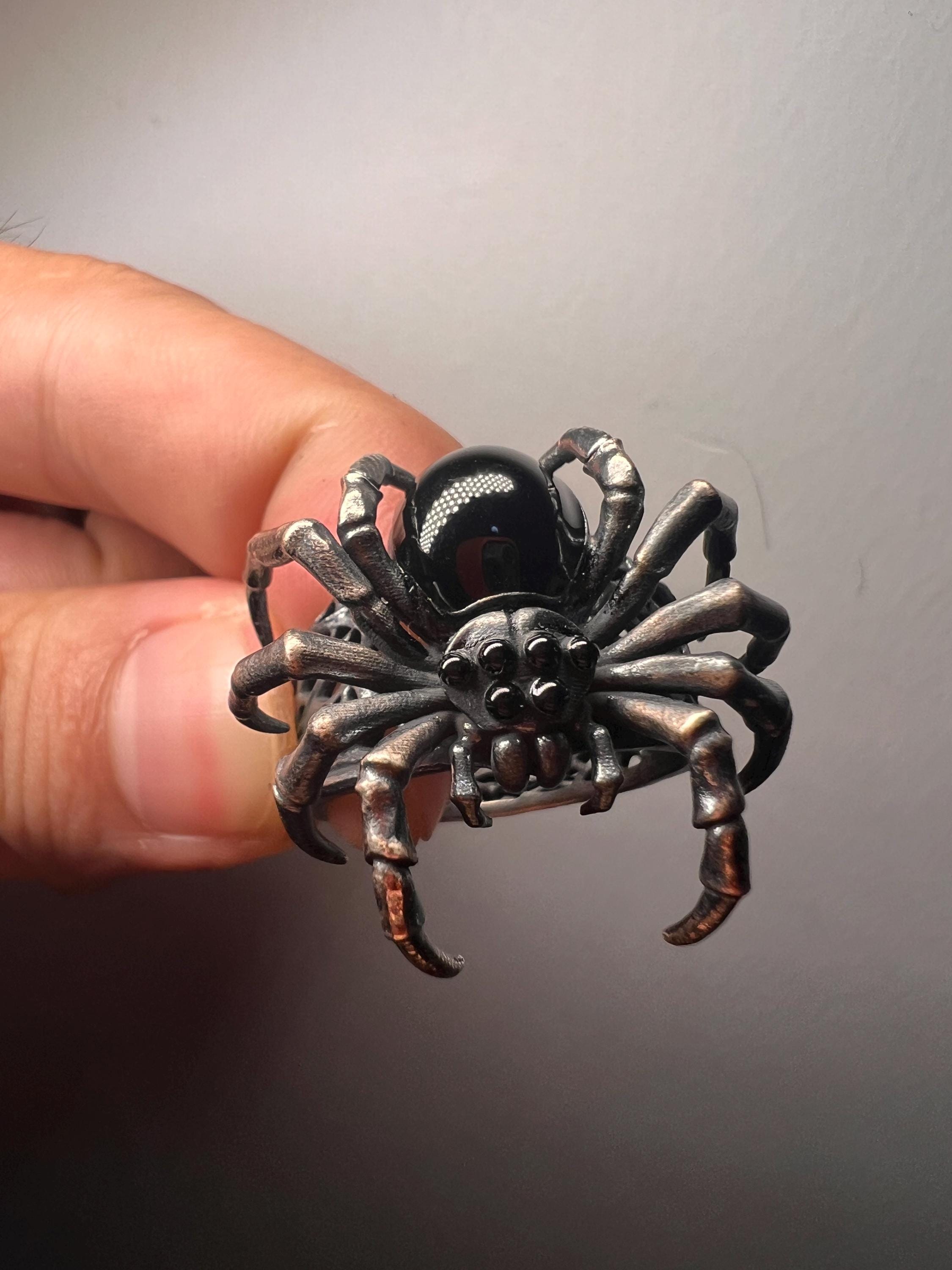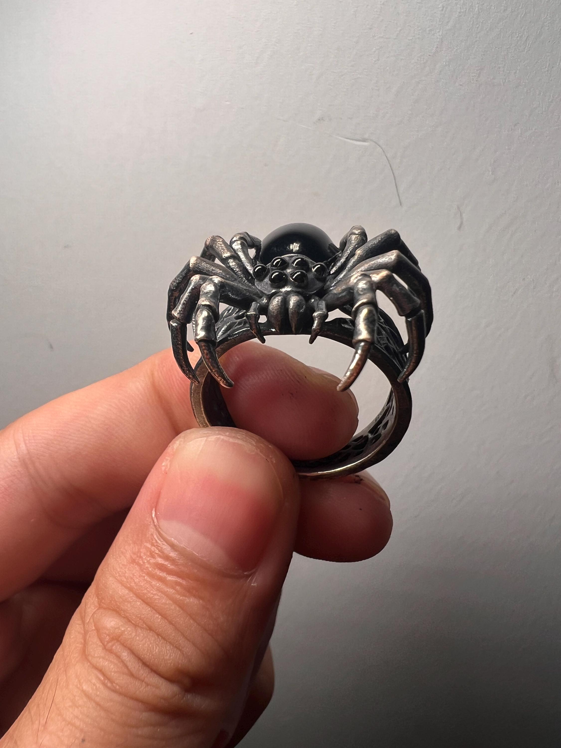 💫 Black Spider Web Ring Handcrafted from S925 sterling silver, accented with a glossy black zircon, this Black Spider Web Ring🕷️. Designed with a lifelike spider perched atop an intricately carved web-pattern band, showcasing dramatic structure and gothic elegance. The deep black zircon adds a mysterious glow, enhancing the bold, dark aesthetic. This design symbolizes intuition, mystery, and inner strength, perfect for gothic fashion lovers, collectors of unique pieces, and those who enjoy bold, artistic jewelry🖤.