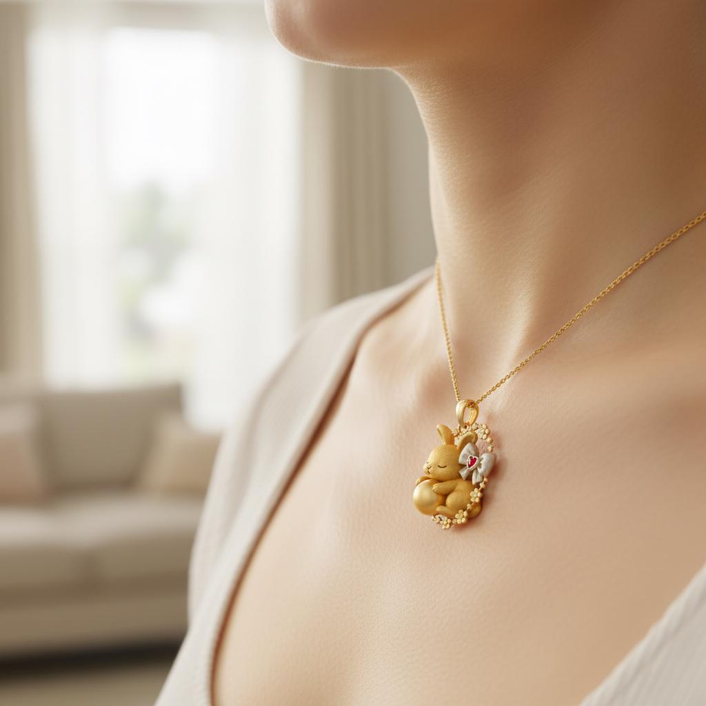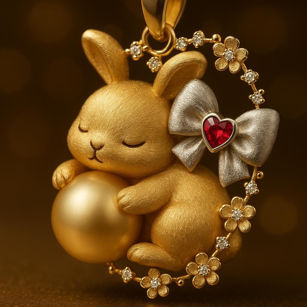 💫 Golden Dream Bunny Pendant Crafted from gold-plated S925 sterling silver, this exquisite Golden Dream Bunny Pendant 🐰 A peacefully sleeping bunny cuddles a soft-glowing pearl, while a silver bow adorned with a heart-shaped red zircon adds a touch of sweetness. The surrounding floral halo, set with sparkling zircons, creates a dreamy, fairy-tale atmosphere. This piece symbolizes warmth, protection, and gentle affection — perfect for romantics, dreamers, or anyone who cherishes soft, healing aesthetics✨