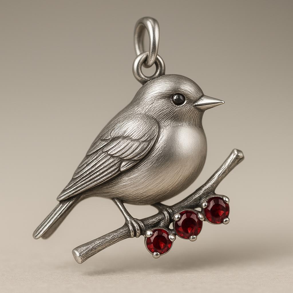 💫 Ruby Finch Pendant Crafted from S925 sterling silver, this exquisite Ruby Finch Pendant 🐦 A delicately sculpted songbird perches gracefully on a slender branch adorned with three deep-red zircon stones, shimmering like ripe berries. The smooth silver finish and the gem’s vibrant sparkle create a warm, gentle atmosphere full of life. This piece symbolizes joy, vitality, and hopeful new beginnings — perfect for bird lovers, gentle personalities, or anyone embracing positivity and renewal✨