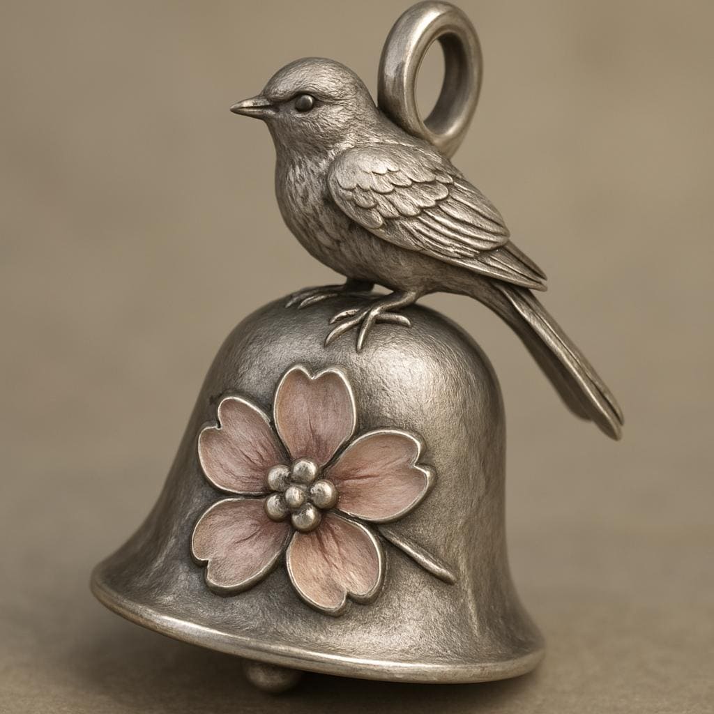 💫 Blossom Bell Bird Pendant 🕊️ Crafted from S925 sterling silver, this exquisite Blossom Bell Bird Pendant features a delicate bird perched gracefully atop a bell-shaped charm.🪶 The bell is adorned with a soft-colored enamel sakura flower, adding gentle warmth and poetic elegance to the piece. The subtle enamel craftsmanship and the serene expression of the bird create a peaceful, nature-inspired atmosphere. This piece symbolizes hope, renewal, and gentle blessings — perfect for nature lovers or anyone seeking a calming, elegant accessory✨