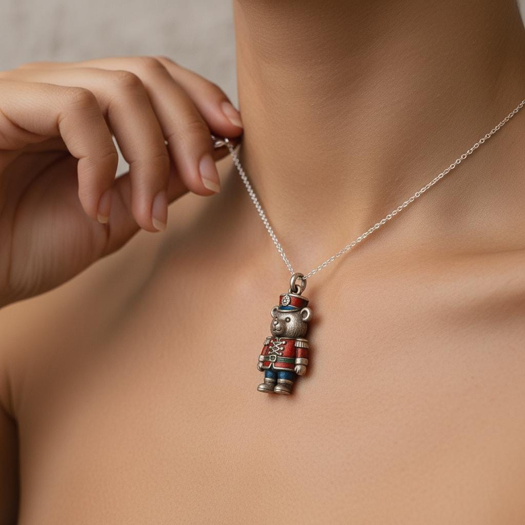💫 Nutcracker Bear Pendant Crafted from S925 sterling silver, this exquisite Nutcracker Bear Pendant captures the charm of a classic toy soldier in bear form 🧸 Featuring finely carved fur texture, miniature uniform details, and vivid enamel colors, every element brings this tiny guardian to life. The playful yet brave character design adds a touch of whimsy and warmth to any look. This piece symbolizes protection, courage, and festive joy — perfect for gift-givers, holiday lovers, and anyone who enjoys adorable statement jewelry 🎁✨