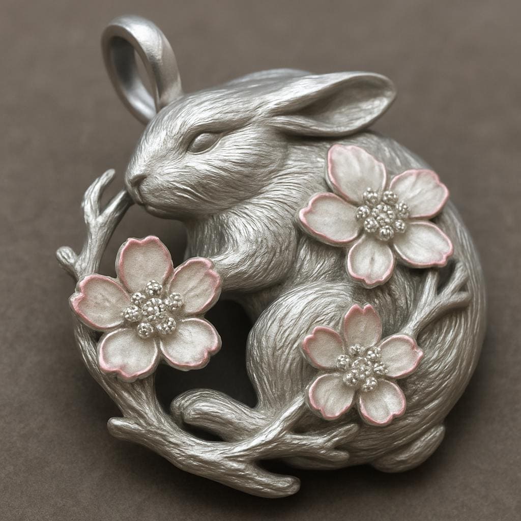 💫 Blossom Rabbit Pendant Crafted from S925 sterling silver, this delicate Blossom Rabbit Pendant 🐇 features a graceful rabbit nestled among blooming branches, adorned with three soft pink-and-white enamel cherry blossoms shimmering with tiny zircon accents. The smooth silver texture contrasts beautifully with the pastel enamel petals, creating a gentle and poetic balance. This pendant symbolizes purity, rebirth, and gentle strength — perfect for those who cherish elegance and spring’s tender spirit🌸