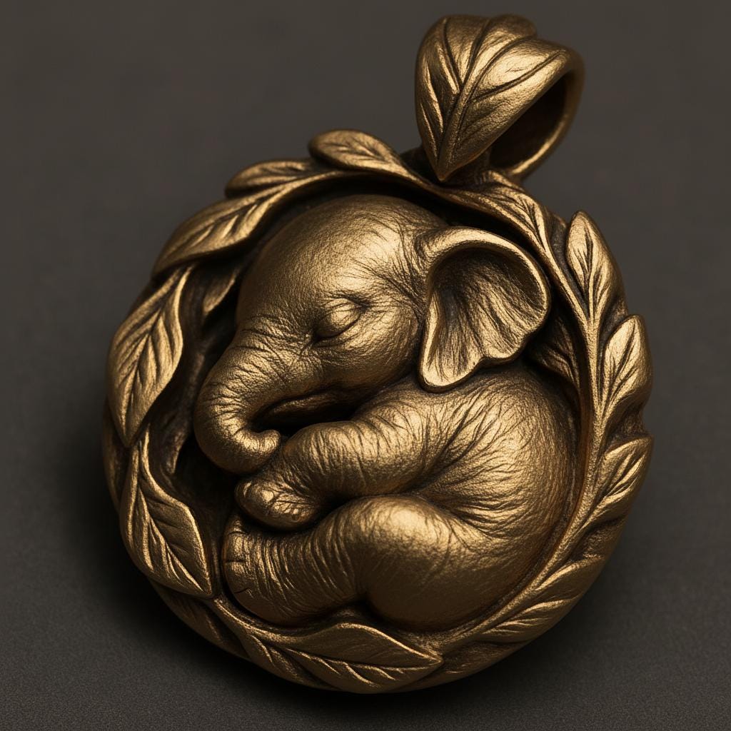 💫 Sleeping Elephant Pendant Carefully handcrafted from S925 sterling silver or gold-plated S925 silver, this Sleeping Elephant Pendant 🐘✨ captures a tender baby elephant curled up peacefully within a wreath of delicate leaves. The soft curves and detailed texture bring out the gentle innocence of the elephant, symbolizing protection, peace, and pure affection. Its warm silver tone and exquisite craftsmanship make it a meaningful keepsake for everyday wear or a heartfelt gift for loved ones💖.