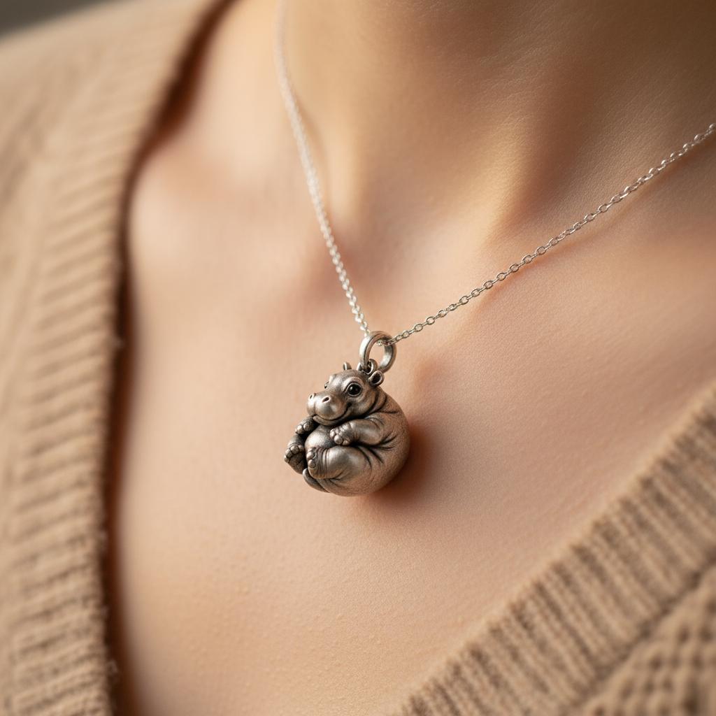 💫 Baby Hippo Pendant Carefully handcrafted from S925 sterling silver, this Baby Hippo Pendant 🦛✨ depicts a chubby, peaceful little hippo curled up adorably in a seated pose. Its round body and delicate details capture the essence of warmth and joy, symbolizing stability, affection, and gentle strength. The smooth silver surface gives it a timeless elegance, perfect for everyday wear. Whether as a gift for an animal lover or a symbol of comfort and positivity, this pendant radiates a soft, heartwarming charm💖.