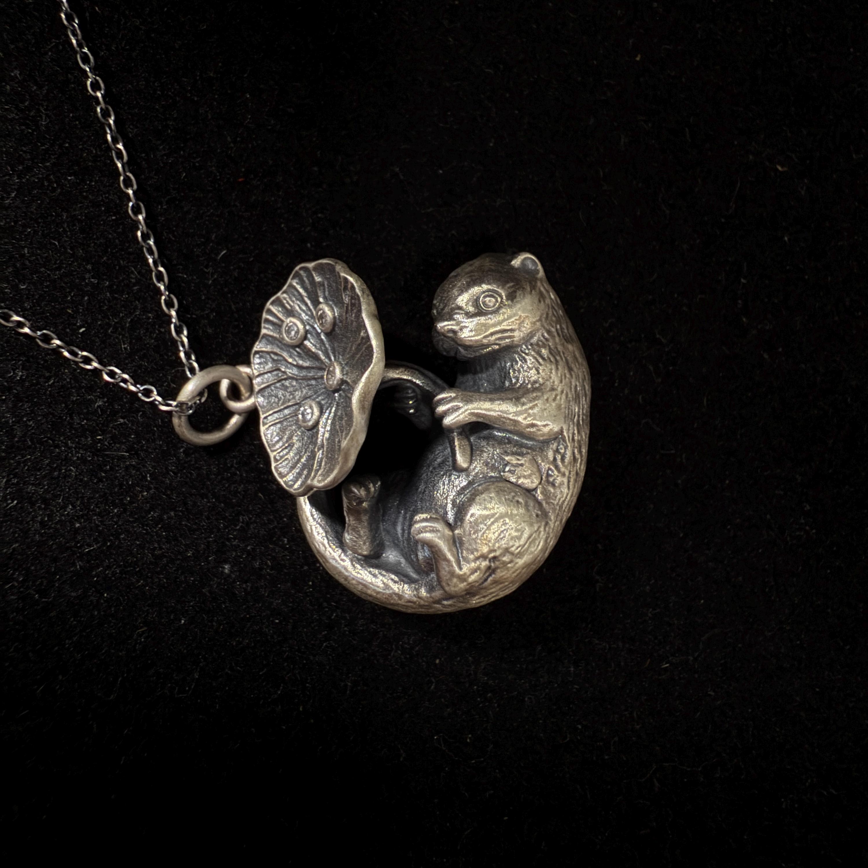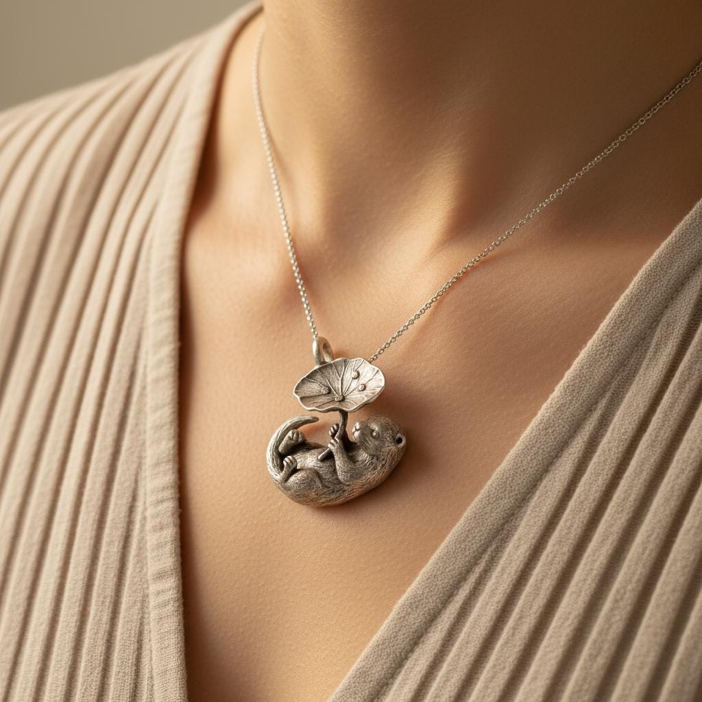💫 Otter with Lotus Pendant Handcrafted from S925 sterling silver, this charming Otter with Lotus Pendant 🦦✨ depicts a playful otter lying on its back, holding a lotus leaf adorned with sparkling zircon gems that resemble morning dew. The design perfectly blends innocence and tranquility, symbolizing purity, playfulness, and a harmonious connection with nature. A delightful piece for those who love unique, nature-inspired jewelry🌿.