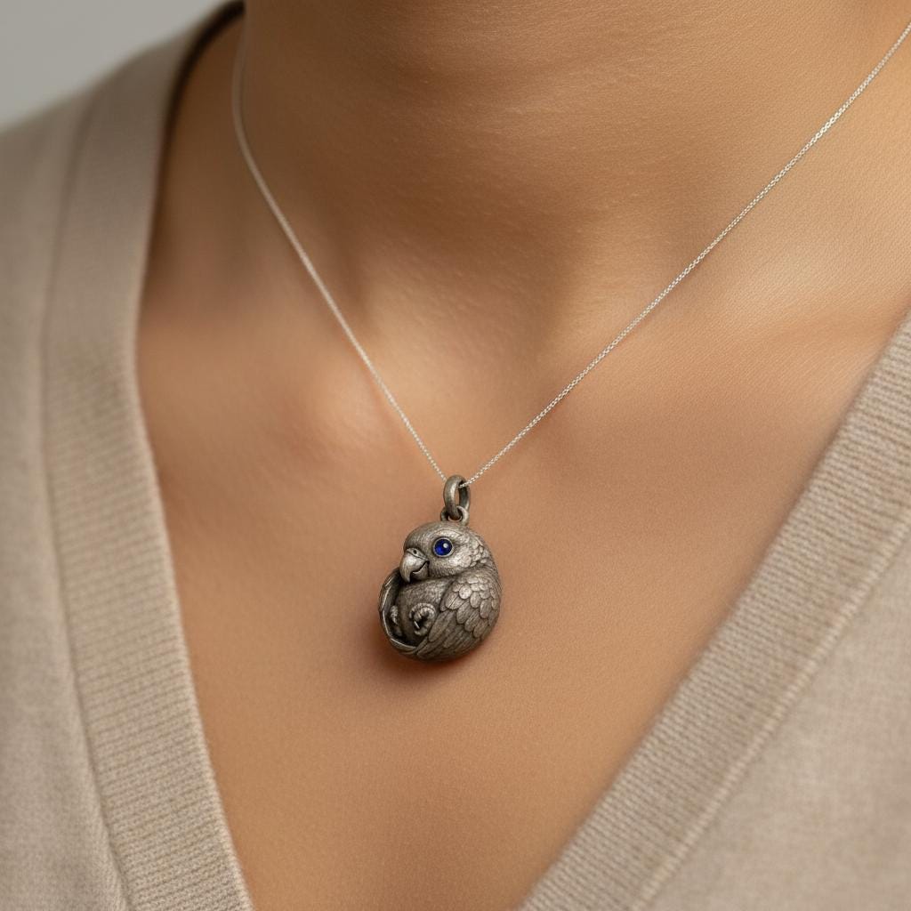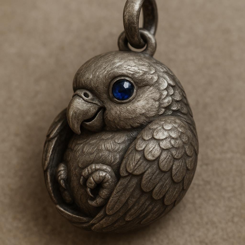 💫 Chubby Parrot Pendant Crafted from S925 sterling silver, this exquisite Chubby Parrot Pendant 🦜 Featuring a round, adorably chubby parrot with finely layered feathers and a vivid blue zircon eye, the design captures the gentle charm and lively spirit of a tiny bird. The softly rounded silhouette brings a warm, comforting presence, making it a delightful companion piece. This pendant symbolizes joy, companionship, and a bright spirit, perfect for animal lovers, gentle personalities, or anyone seeking a cheerful everyday talisman✨