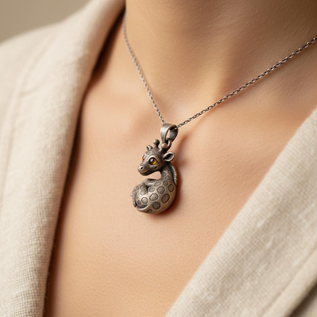 💫 Baby Giraffe Pendant Crafted from S925 sterling silver, this exquisite Baby Giraffe Pendant brings playful elegance to life 🦒 Featuring a curled, sitting baby giraffe with bright zircon eyes, its lively expression captures youthful curiosity and charm Delicately sculpted, the flowing texture and rounded posture create a soft, heart-warming presence. This piece symbolizes innocence, joy, and gentle companionship — perfect for animal lovers, sweet styles, or meaningful gifts 🎁💛