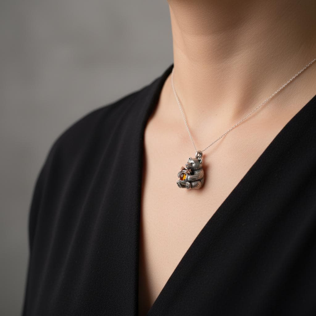 💫 Honey Bear Pendant Crafted from S925 sterling silver, this adorable Honey Bear Pendant features a charming bear holding a honey jar, accented with a warm amber-yellow gemstone at its center.🍯🐻 The tiny bees and detailed fur texture bring the design to life, creating a cozy woodland atmosphere. This piece symbolizes sweetness, warmth, and gentle protection — perfect for nature lovers, animal lovers, or anyone who adores whimsical jewelry ✨