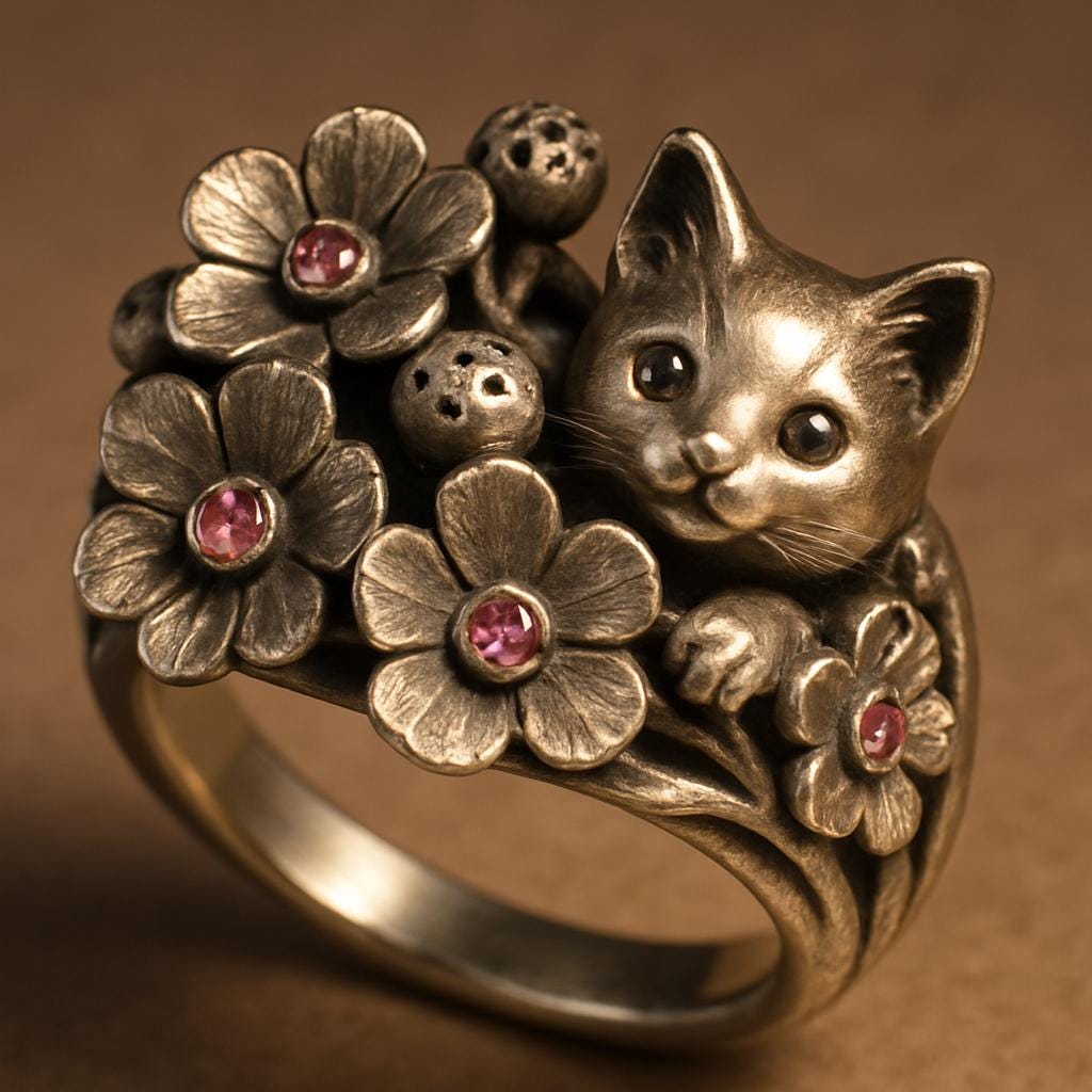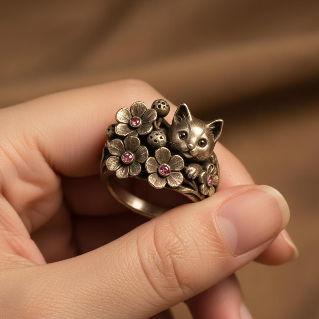 💫 Blossom Kitten Ring Crafted from S925 sterling silver, this adorable Blossom Kitten Ring features a curious kitten peeking out from a cluster of blooming flowers.🌸🐾 Each flower is accented with pink cubic zirconia, adding a lively sparkle and springtime charm. The playful design captures the innocence and warmth of nature, making it a wearable story of cuteness and bloom. This piece symbolizes joy, tenderness, and companionship — perfect for cat lovers, nature enthusiasts, and anyone with a gentle heart 💖